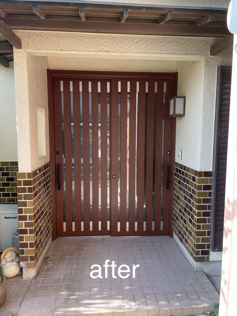 玄関のサッシを新しくしたいとご依頼を受けました。1日で施工完了できるカバー工法を採用。