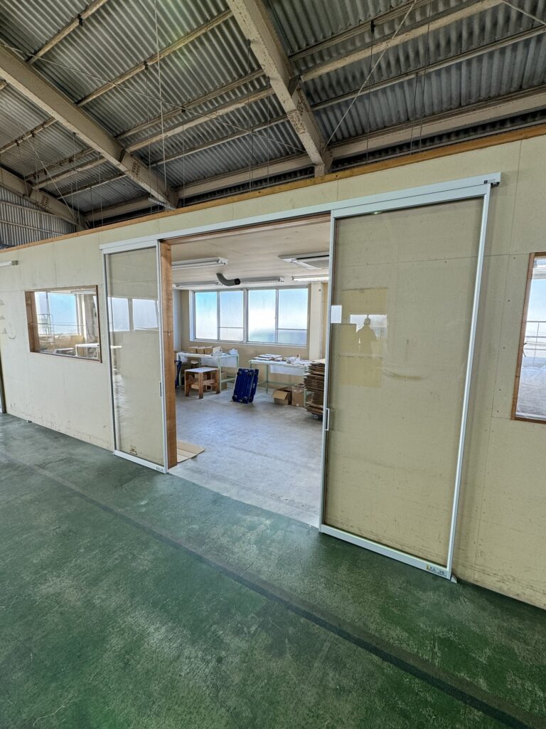 掛川市(株)T様 リフォーム工事 2025.08.01 従業員さんの作業スペースへ引分け戸を設置。 アクリル製の建具で軽さと明るさを確保。冷暖房の効きも良くなります。 別の建屋では大開口部分に壁をつくり、入口も引込み戸にして大きなコンテナの出し入れもスムーズにできます。 掛川市(株)T様 リフォーム工事 ツイート 施工実績 掛川市I様邸 下駄箱作成 掛川市Y様邸 手摺・踏段設置 関連記事一覧 掛川市K様邸 窓リノベ取替工事 オーダーメイド学習机 エクステリア工事 書斎新築工事 袋井市S様邸、カーポート新設工事。 店舗改修工事 掛川市Y様邸 手摺・踏段設置 掛川市K様邸。フェンス新設工事 袋井市S様邸 手摺取付、踏台設置
